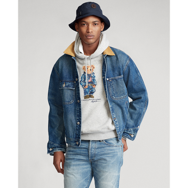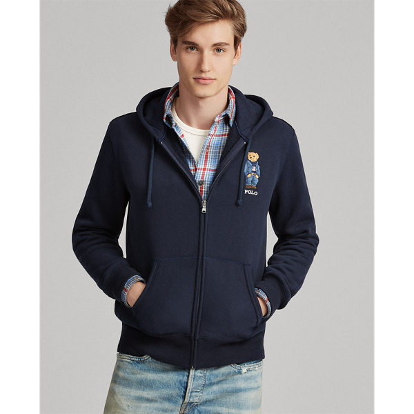 Polo Bear Polo Bear by Ralph Lauren and Ralph Lauren script printed on the centre front. Buy Ralph Lauren Mens Denim Bear Fleece Hoodie. Usually ships within 7 to 14 days.